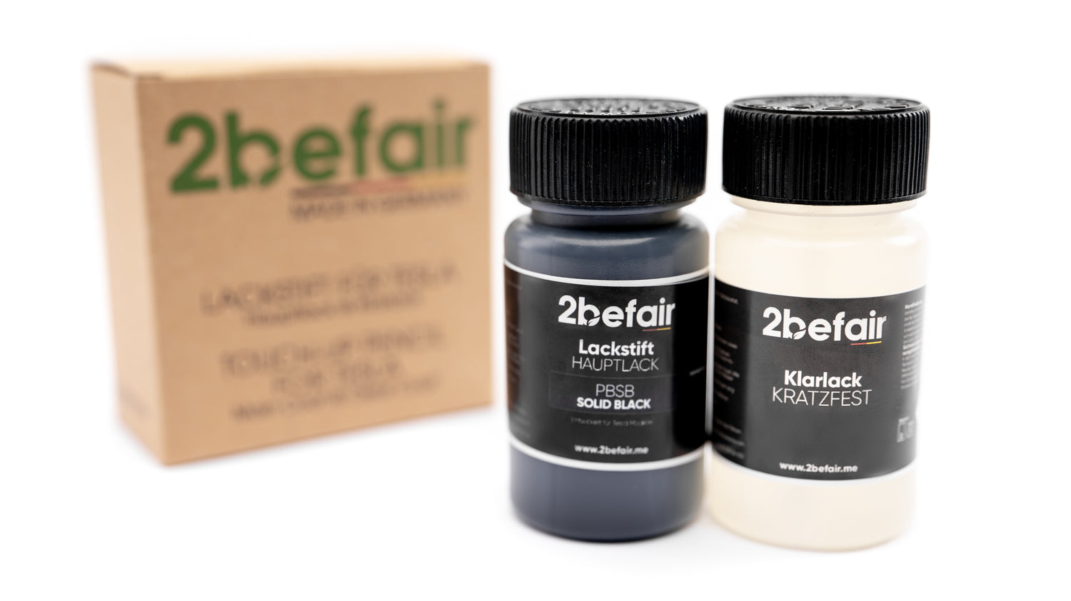 Bessere Steinschläge oder Kratzer in deinem Tesla mit unseren speziell angemischten 2befair Lackstiften aus. Unsere Lackstifte bieten perfekte Farbgenauigkeit für die Tesla Lacke. Das Set besteht aus dem Hauptlack der entsprechenden Farbe und dem Klarlack.